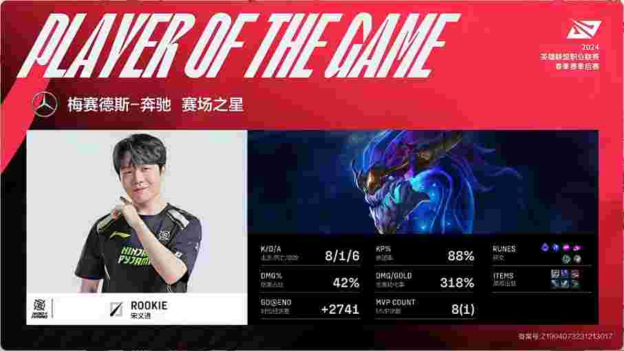 第27分半,NIP在中路埋伏找到机会,洛完美开团,NIP众人一拥而上轻松团灭对手一波结束了比赛。
