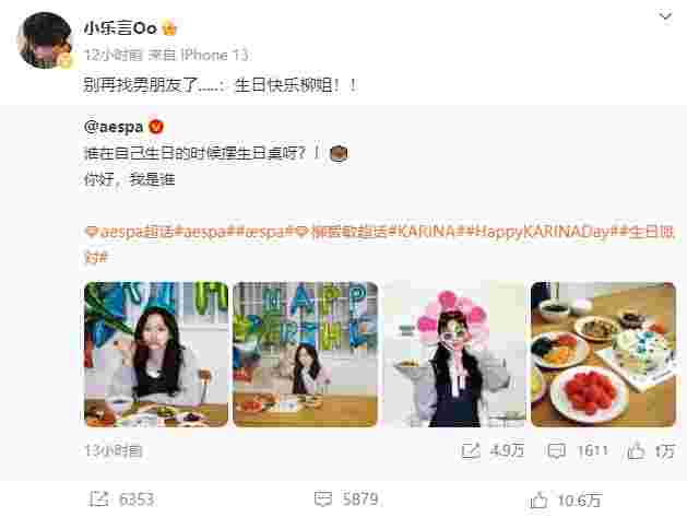 4月11日晚,IG战队打野选手Leyan在个人微博转发了一条韩国女团aespa官博发布的成员柳智敏的生日贺文,并配文“别再找男朋友了....:生日快乐柳姐!!”,但随后这条微博被柳智敏粉丝盯上,追着骂了几千条评论: