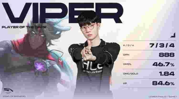 红色方HLE:Doran格温、Peanut猪妹、Zeka永恩、Viper金克丝、Delight锤石