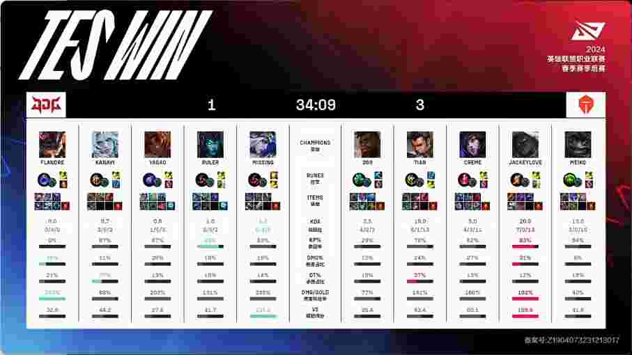北京时间4月14日,2024年LPL春季赛季后赛败者组决赛,由TES对阵JDG。