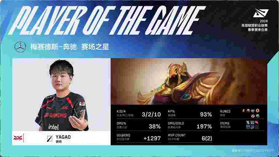 第31分半,TES人员不齐,女坦下路强行开团后被定在人群中击杀,盲僧进人群击杀卡莉丝塔与库奇拿到双杀,韦鲁斯终结厄加特,JDG打出0换4下路一波推平TES基地扳回一城。