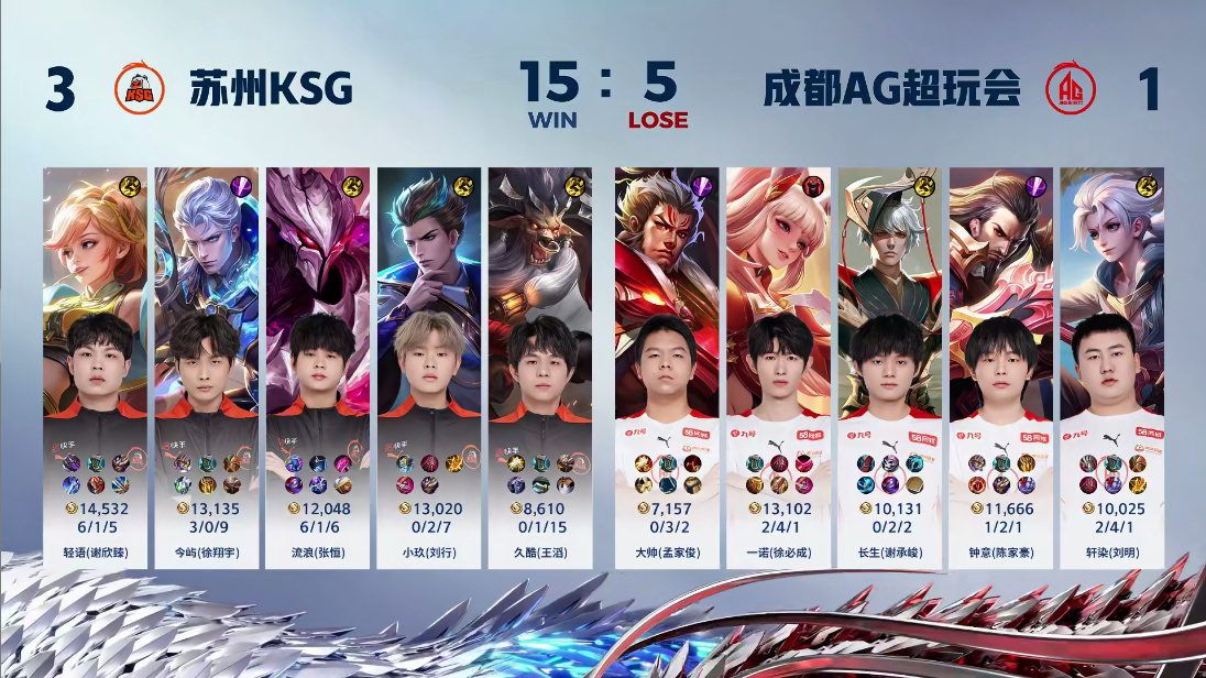 【苏州KSG 3:1 成都AG超玩会】苏州KSG 拿下第四局比赛!