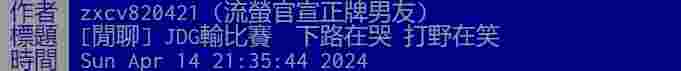 4月14日,2024LPL春季赛季后赛败者组决赛,TES以3比1战胜JDG,赛后中国台湾PTT论坛网友对这场比赛JDG的失利展开了谈论:
