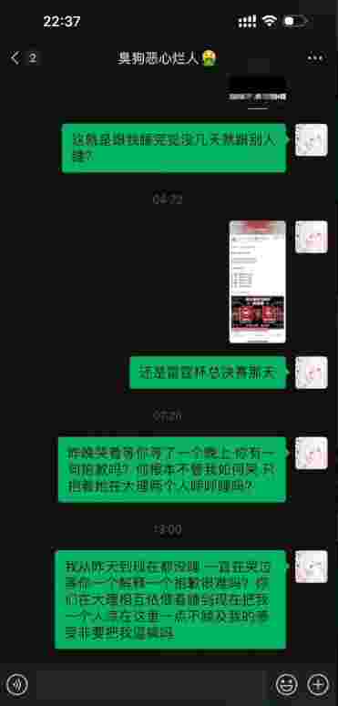 他除了刚降落大理给我打电话说他错了,之后到现在一天一夜了没有给我任何回复,我所说的话和聊天记录愿意承担一切法律责任,感谢支持我的网友包括私信安慰我的姐妹。