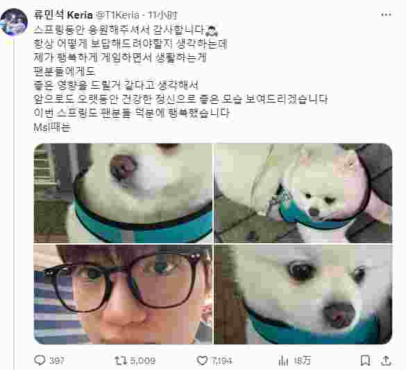 T1辅助选手Keria昨晚更新个人社媒,“感谢大家在春季赛期间对我的支持,我一直在想怎样才能报答大家,但我觉得我快乐的比赛和生活会对我的粉丝们产生良好的影响,所以我会在今后很长一段时间内继续展现我的良好风貌。