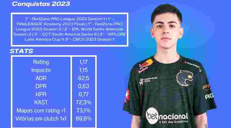 FURIA Academy中出类拔萃的选手,2023年他在青训队的rating为1.17,在队伍中的发挥相当亮眼。