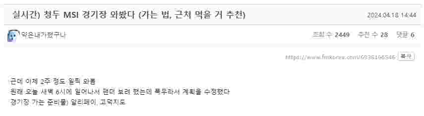 4月18日,韩网有网友发布帖子,分享了自己提前前往成都准备观看2024MSI的踩点记录: