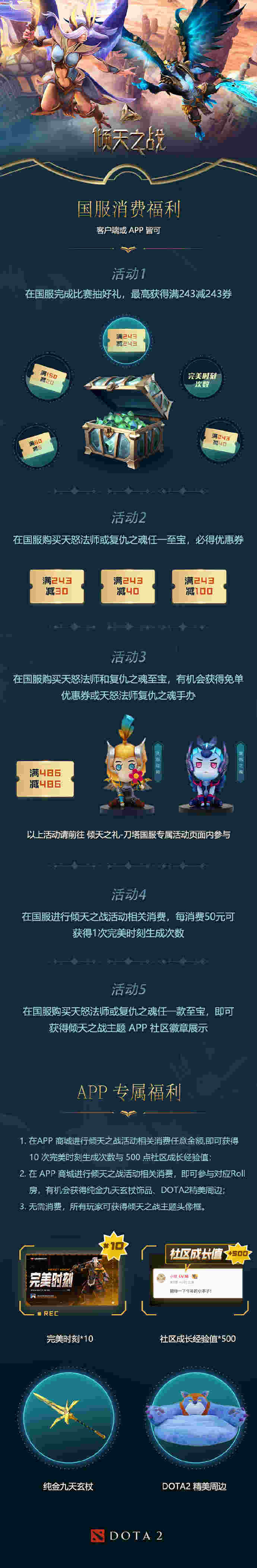 近日,DOTA2国服开启了倾天之战活动,国服福利如下: