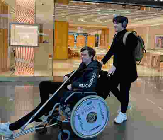 雪碧官推发文抵达伯明翰,Miposhka坐轮椅拄拐杖,看来他得带著石膏打完整场比赛了!