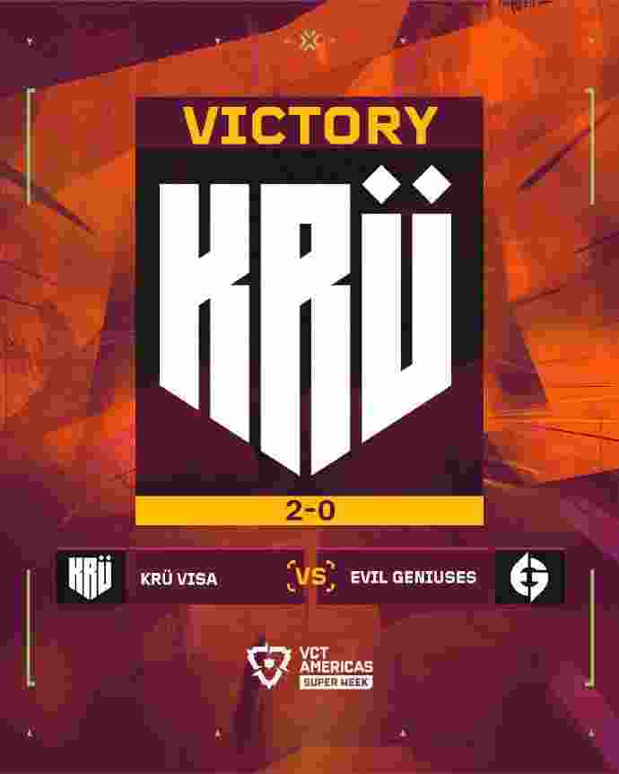 VCT 美洲联赛第一赛段来到第三周第二比赛日,首场比赛KRU迎战洛杉矶冠军赛的冠军EG,由于管理层的骚操作,导致队伍分崩离析的EG如今也是虎落平阳,KRU直落两盘,轻松带走EG,战绩目前也比肩C9同为3-0。