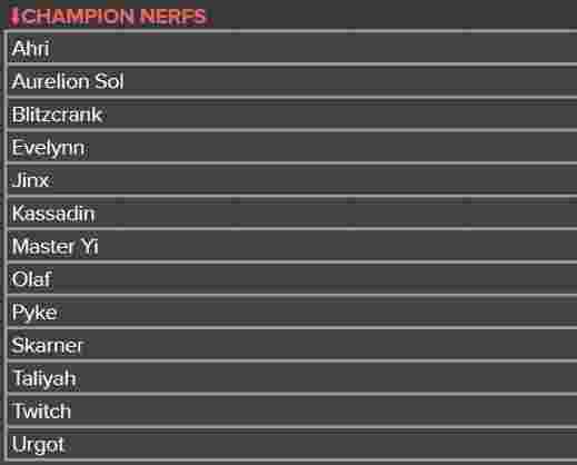 阿狸、龙王、机器人、伊芙琳、金克丝、剑圣、卡萨丁、奥拉夫、派克、蝎子、岩雀、老鼠、厄加特