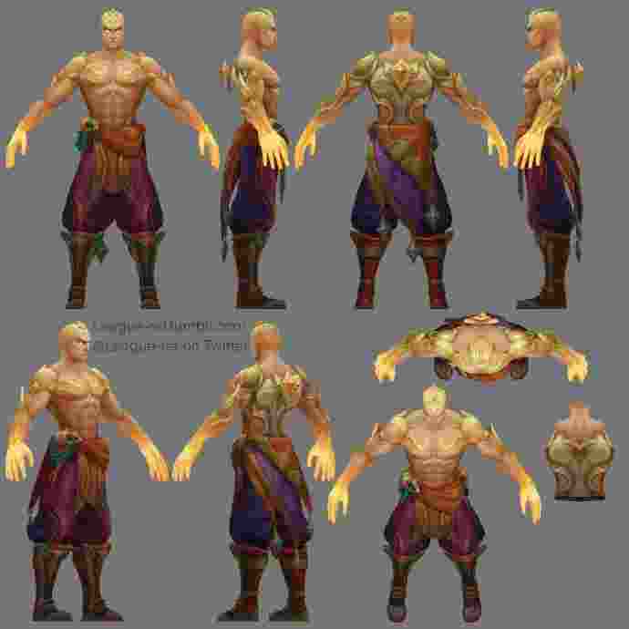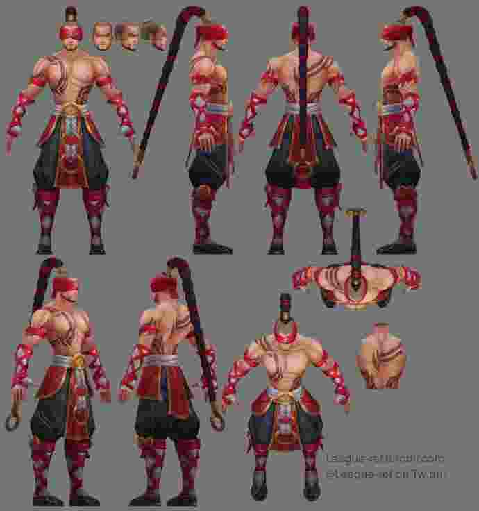 4月223日,英雄联盟官博分享了新版盲僧的ASU模型图,分别是神拳、神龙尊者和初始皮肤,详情如下: