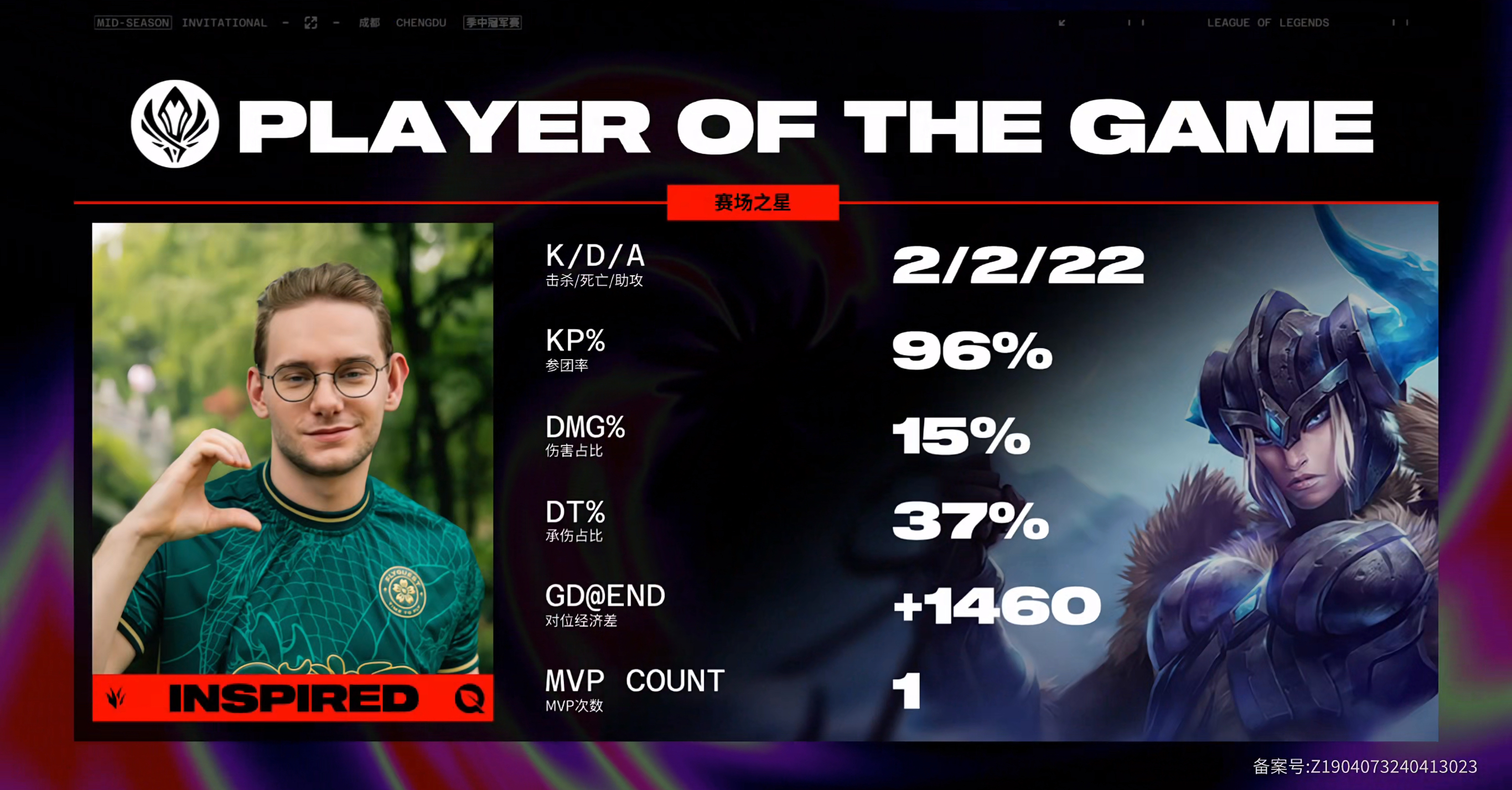 【15:25】泰坦来骚扰打先锋的PSG,皇子追击到敌方野区泰坦再次被击杀。