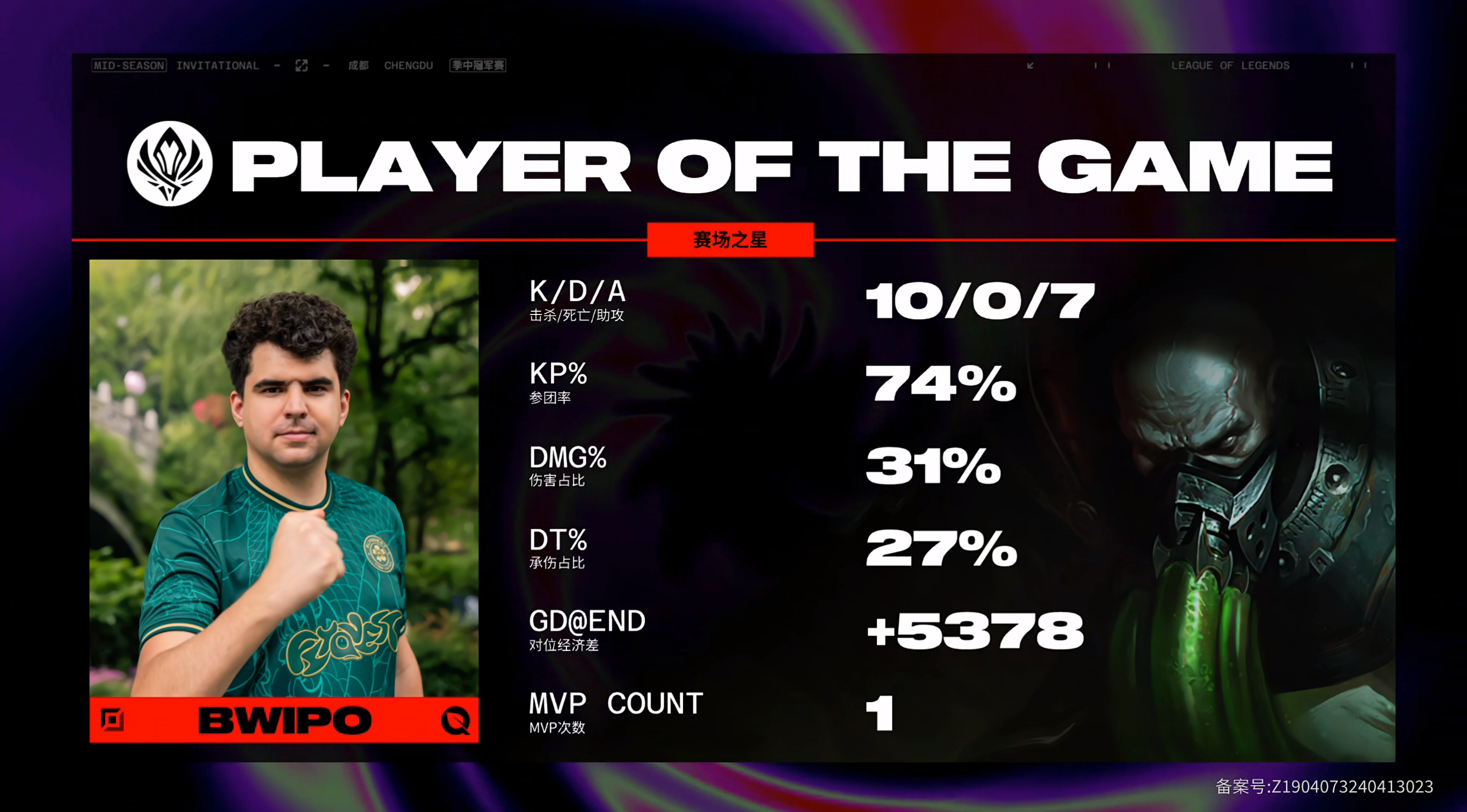 【10:15】发条先手大招拉到卡尔玛,配合猪妹控制将其击杀,赵信迟迟赶到没能交换人头。