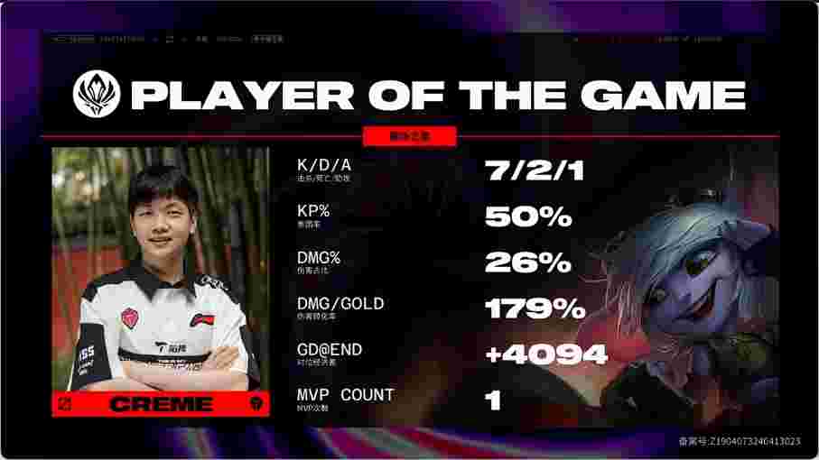 开局双方爆发一级团,小炮与队友不在一处被洛W逼出闪现,猪妹向前挂上被动配合队友完成击杀,洛拿到一血。