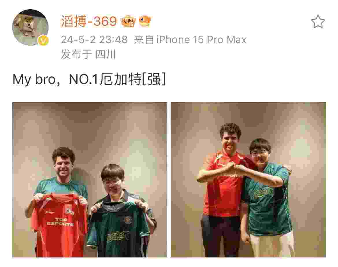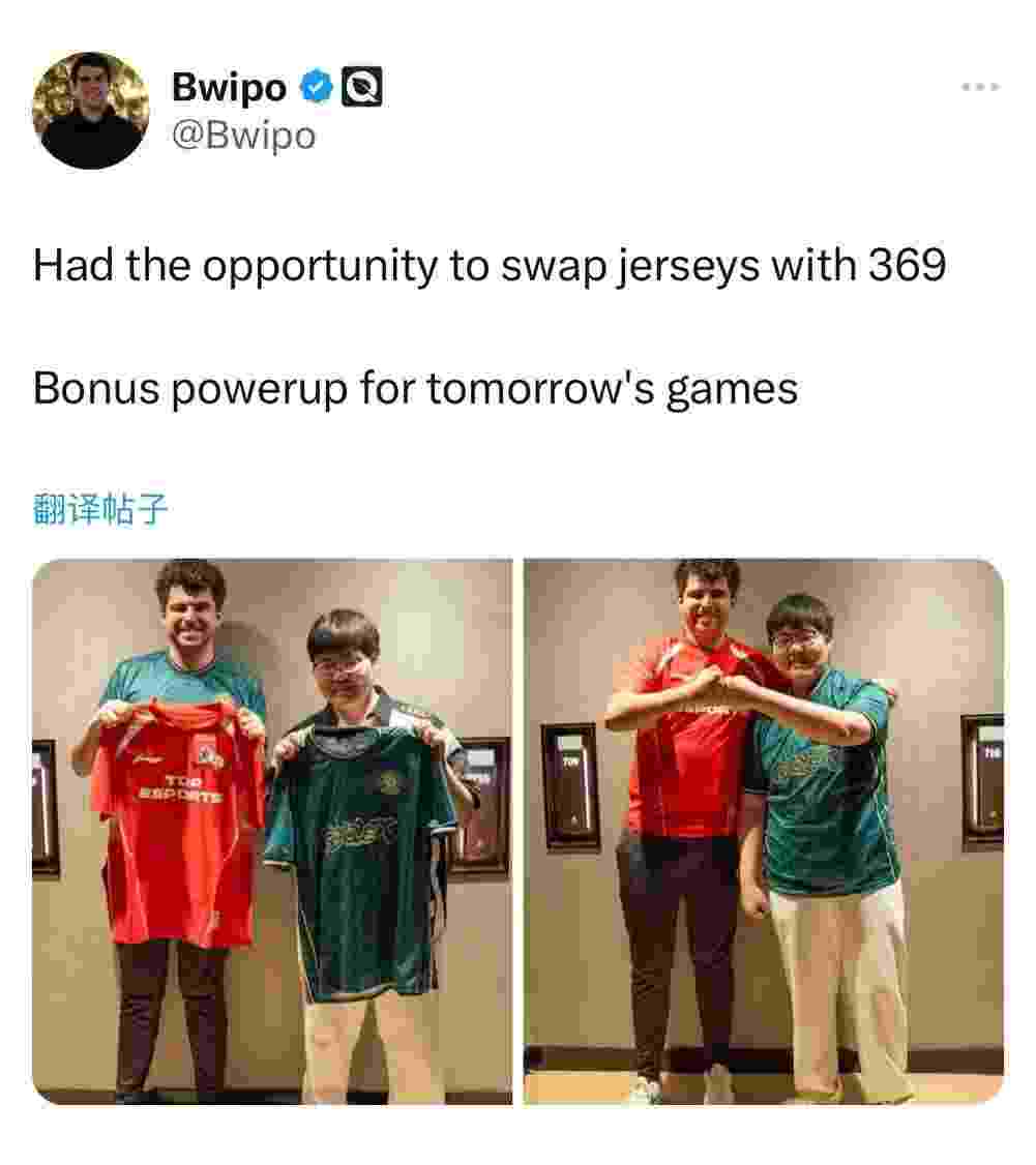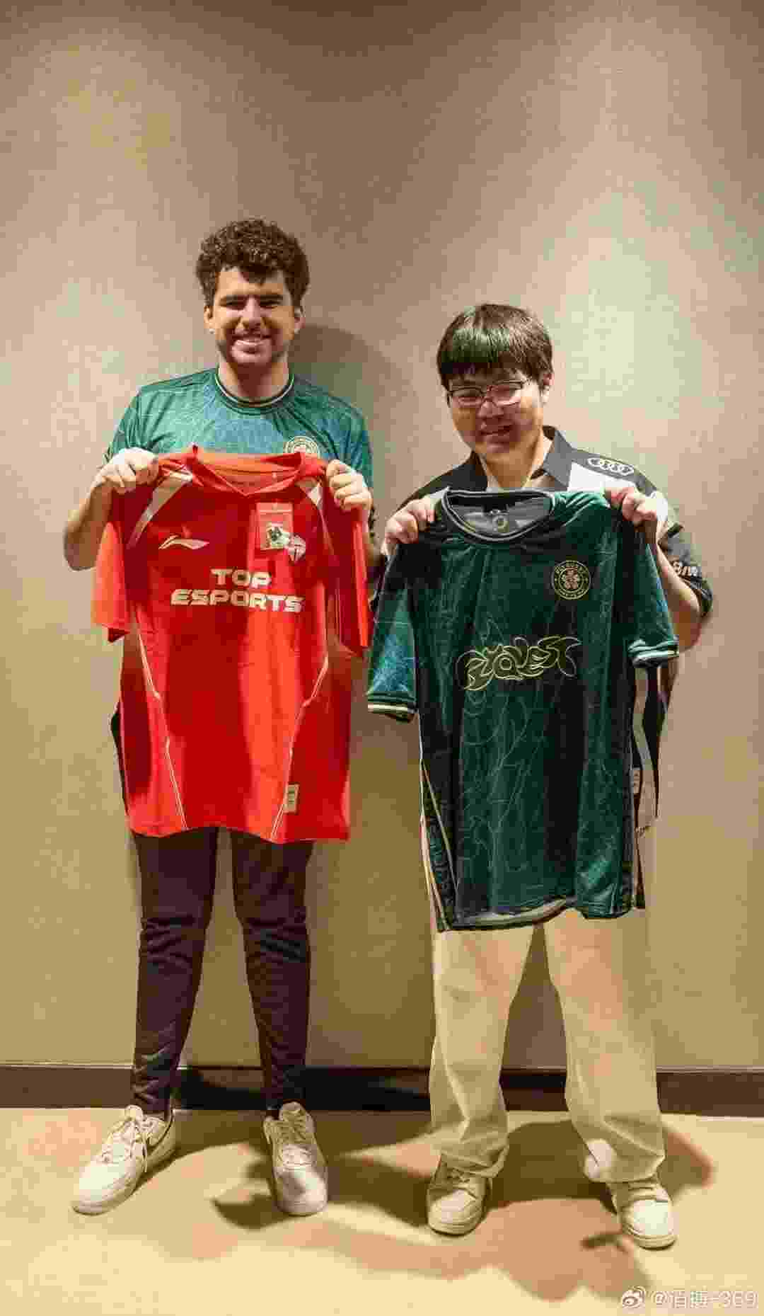 5月2日晚,Bwipo和369分别在社交媒体晒出与对方交换队服的照片: