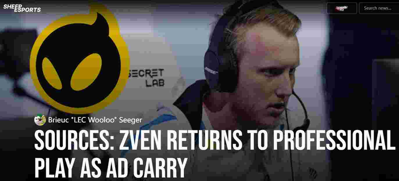 5月9日,外媒Sheep Esports发布消息称,欧洲赛区知名选手Zven将重回ADC位置,并有望加入Dignitas战队: