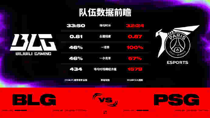 今天BLG将迎来首秀,而对手是有多名前LPL选手的PSG,想必双方不会太陌生。PSG在入围赛首战失利但最后成功复仇FLY突围,状态调整非常快。而BLG毫无疑问在硬实力上有所领先,并且BLG的线上压制力极强,PSG或许会通过换线战术来弥补双方的对线差距,但BLG队内Carry点非常多,能支持他们执行各种体系,就看他们今天会有怎样的面貌。