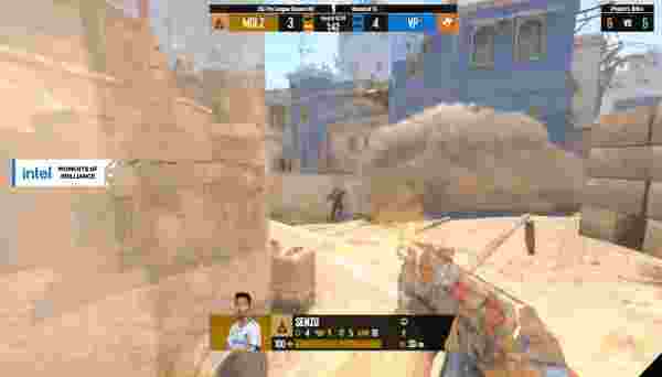 比赛来到上半场第一个长枪局,开局VP快抢到B外集合,他们打算用一波B区提速直接粉碎蒙古队的B区。小胖顶防B长,第一时间直接和钻烟的匪徒撞了个满怀,n0rb3r7轻松将其击毙,但是他们后续的道具有些匮乏,虽然VP众人挺进到了包点近点,但是面对水下senzu和布里茨两人的架枪威胁和烟雾弹的拖延,导致VP一直没有很好的办法下包,senzu和布里茨来回骚扰,被烟雾隔断的VP众人很难补枪,导致被布里茨用吹风机一个一个磨死。殊死一搏的fame枪法出现了失误,最终VP丢掉了这一分。