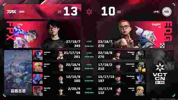 全场比赛的总比分:FPX 2-0 EDG,森寒冬港(13-10)微风岛屿(14-12)