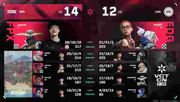 攻防转换后FPX有惊无险拿下手枪局。第十五回合五把狂徒的EDG被FPX找到漏洞,好在Smoggy枪法够硬四杀拯救队伍。但幸运女神不会总眷顾EDG,Life配合盖克鲨鱼守包四杀,胜利天平逐渐朝向FPX。韧性极强的EDG调整战术,果断前压A区将对手送入经济局,吹起反攻号角。第二十二回合康康站在黄箱上大狙拿到首杀,Life见缝插针突破B区帮助队伍拿到赛点。次局康康冥驹拿到中路首杀,FPX进攻A区受阻转B,关键先生Life贡献四杀终结比赛。