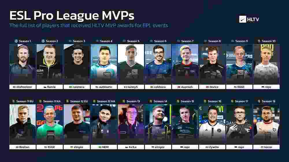 EPL目前已经举办到了第19届赛事,在EPL S19八强淘汰赛之际,HLTV统计并列举了此前18届EPL赛事的MVP选手,一起来看看当时是谁称霸一方吧。