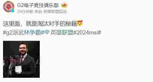 5月12日,2024MSI季中冠军赛败者组G2对阵PSG的比赛正在进行,赛前G2电子竞技俱乐部官博发文:“这里面,就是淘汰对手的秘籍”