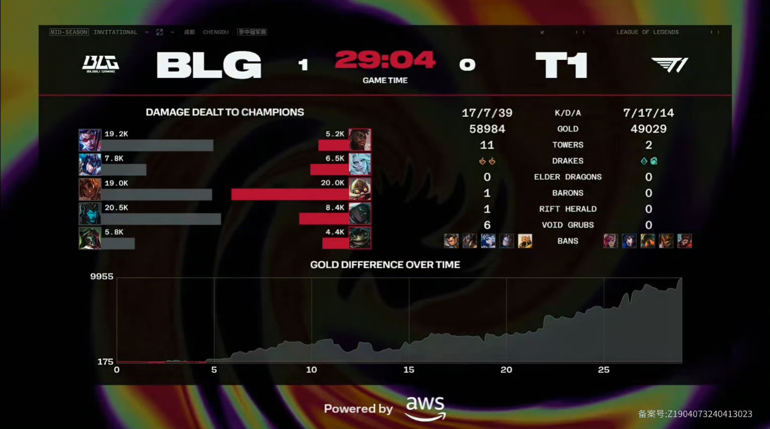 北京时间5月12日,胜败分组赛胜者组半决赛,由BLG对阵T1