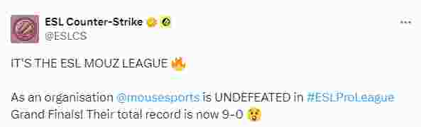 ESL官方也是发布动态盛赞MOUZ的统治力: