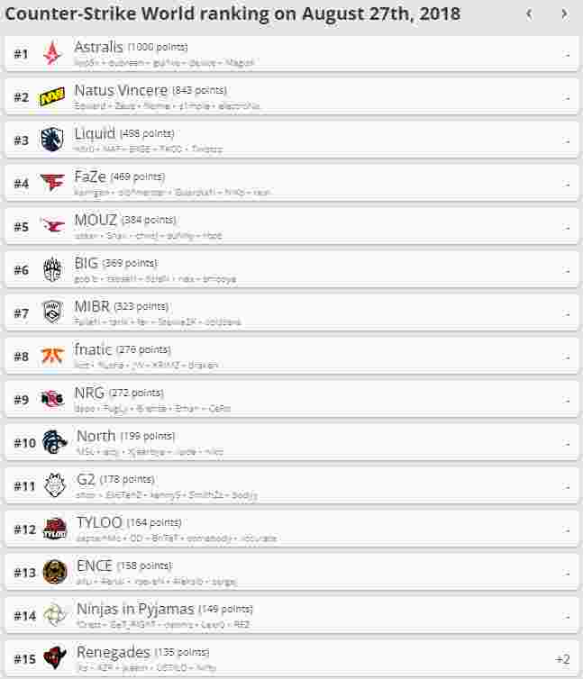 5月13日HLTV世界排名更新后,这些内容值得关注: