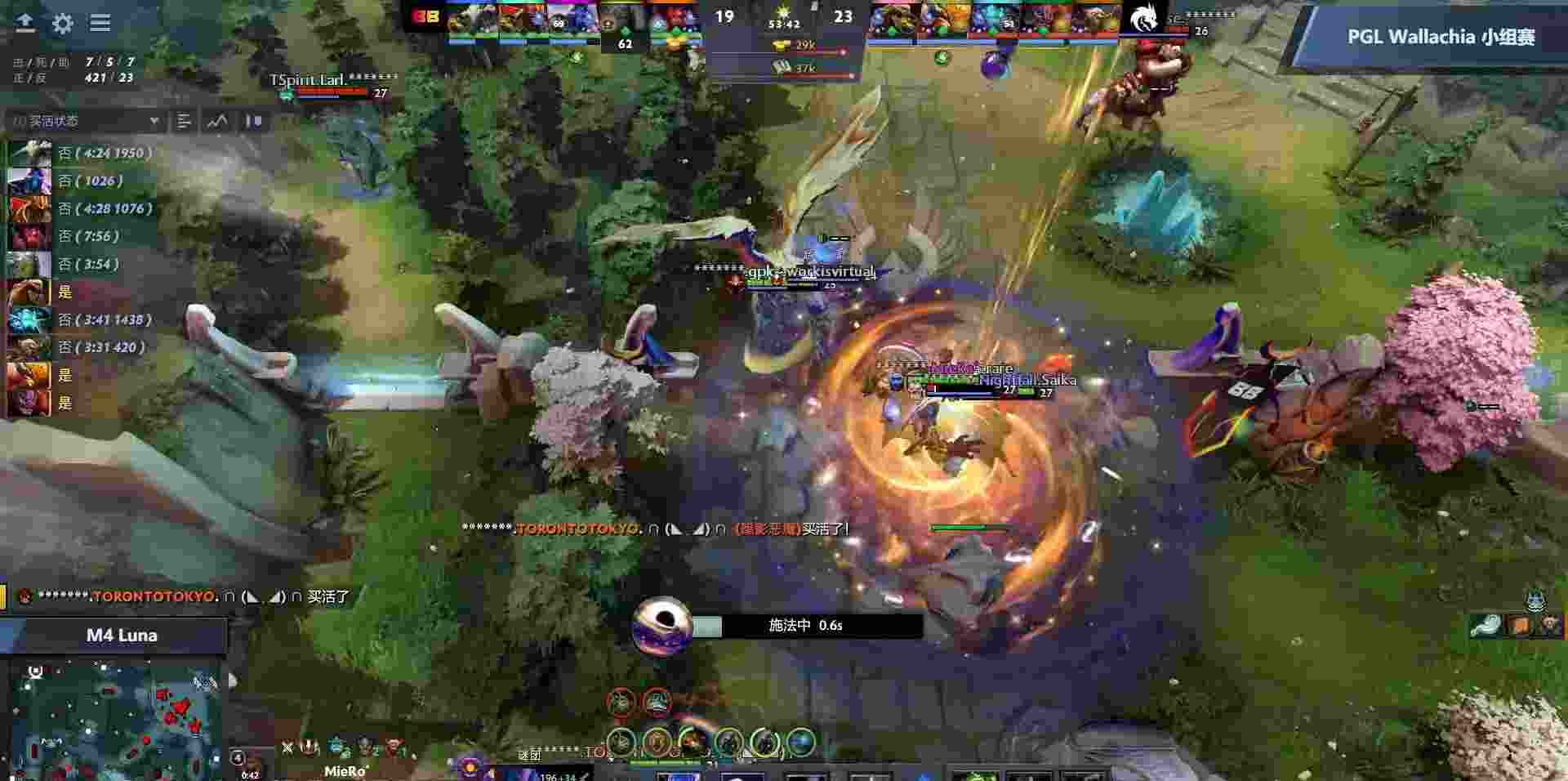 19分钟,TS下路动手猛犸,虚空罩大没能击杀被反打,但TS众人做好准备,毒狗船长潮汐先后支援,技能连锁和拉扯下TS打出BB除光法外四人团灭,自己仅阵亡船长。经济差拉开到11K。