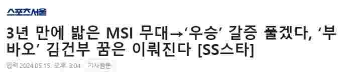 15日,在接受首尔体育的采访时,Canyon表示:“2021年MSI决赛中我们输给了来自LPL的RNG,没能夺冠,很遗憾。今年参加了在中国举办的MSI,希望能弥补上次的遗憾。在听到粉丝们的欢呼声和支持后,我更加坚定了要赢下冠军的决心。”