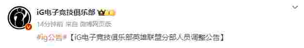 【iG电子竞技俱乐部英雄联盟分部人员调整公告】