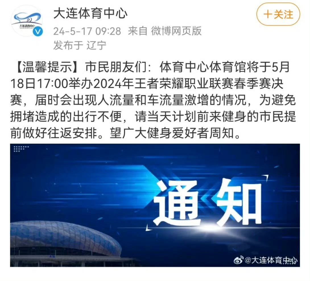 大连体育中心发布通知: