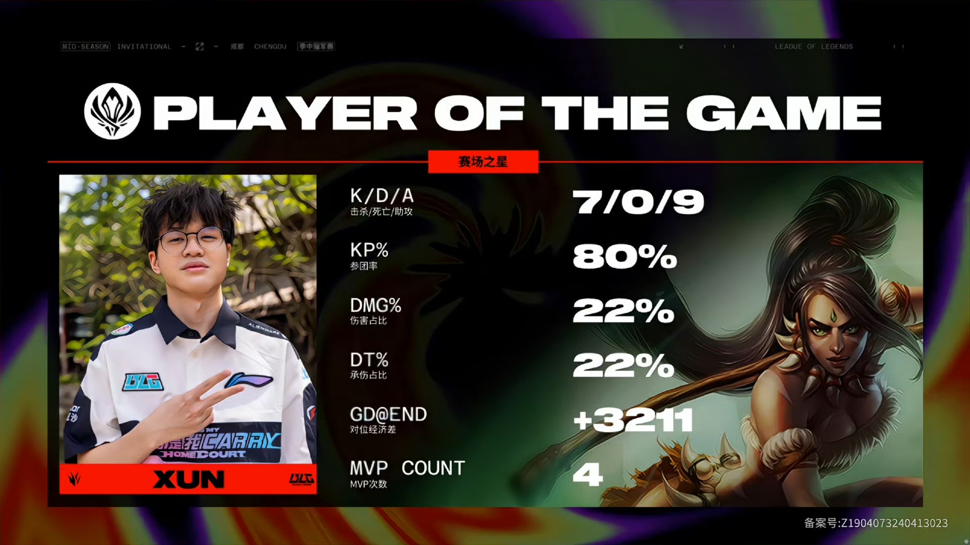 【24:00】炼金龙团,赵信向前拼惩拿下炼金龙魂,妮蔻大招控到4个,卡牌绕后击杀塞纳,BLG团战大获全胜。