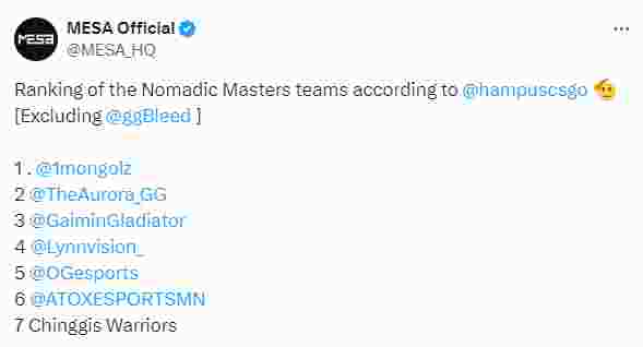 近日,游牧春季大师赛赛事主办方MESA在官推分享了