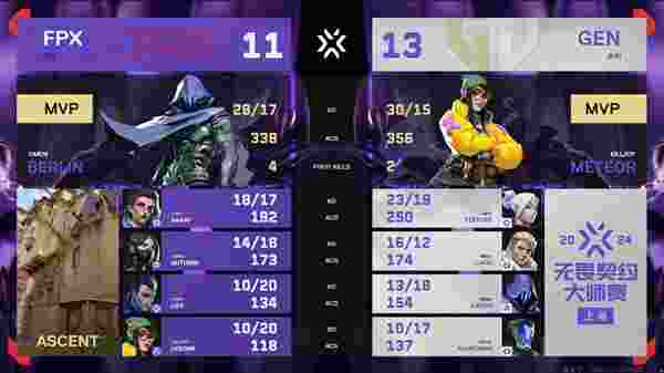 GENG强大的实力在决胜图展现的淋漓尽致,虽然FPX在后半段逐渐找回了自己的节奏,但是在最终局GENG的变速进攻还是让FPX失去了最后的机会,GENG以13-11收下了最后的胜利。
