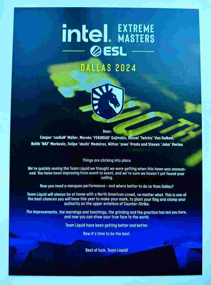Liquid晒出了ESL给他们在IEM 达拉斯站的赛事寄语。