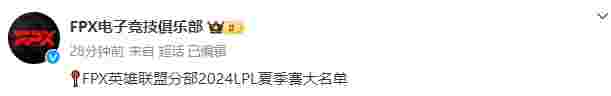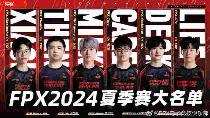 5月28日,FPX俱乐部官方微博发布了2024LPL夏季赛大名单: