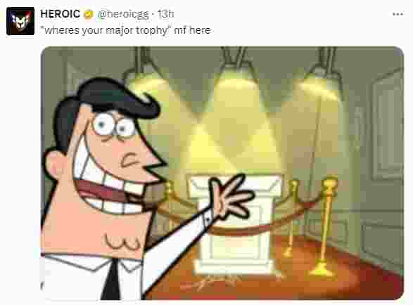 戏很多的Heroic还在自己的动态下方发表评论与配图:“你的Major奖杯在哪呢?”