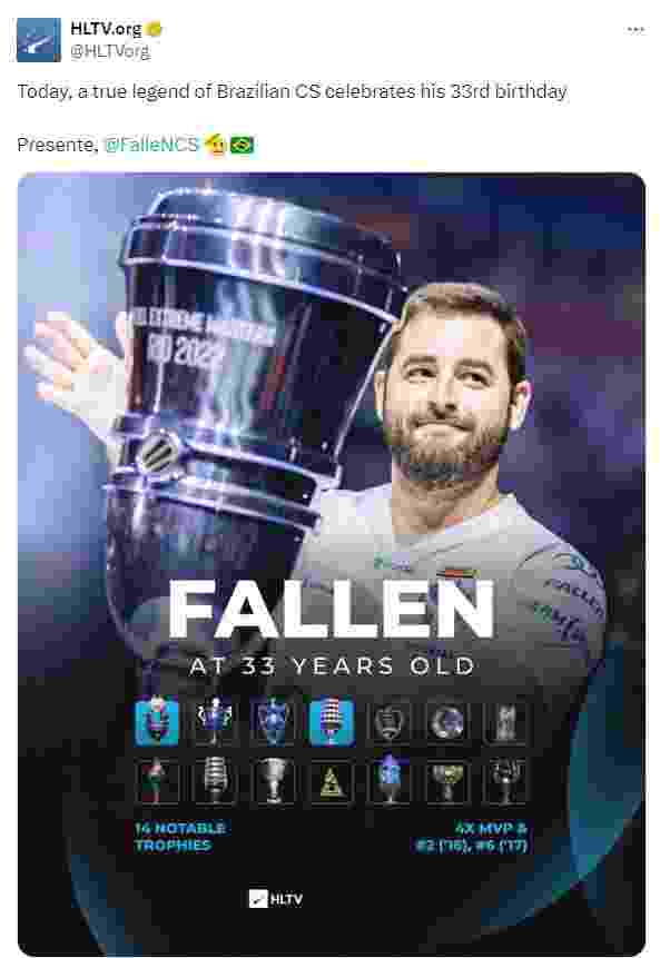 HLTV也是在祝福FalleN的同时,列举了这位巴西传奇选手的生涯荣誉: