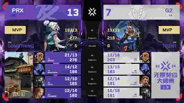 PRX在上半场攒下的大量分数领先,因此他们在下半场的容错率大大提升。丢掉赛点的G2没能把握住机会,最终被PRX以13-7收下了最后的胜利!