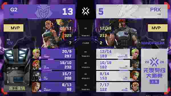 上半场丢失太多的分数导致PRX没有太多的容错,接连的战术失误也让这场比赛很快失去了悬念。率先拿下赛点的G2稳健发挥,迅速以13-5收下了最后的胜利。