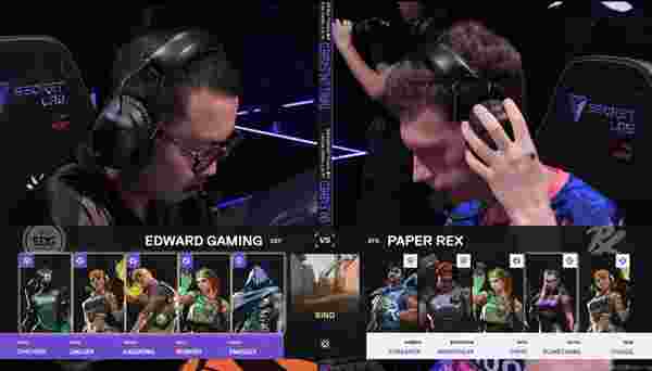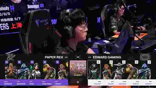 下半场手枪局双方A区5v5,PRX意识到重兵把守后立即封上冰墙转A区取得胜利。比赛来到第十五局EDG切换策略前压红砖路截断爆能器,EDG围点打援拿到第五分。经济局的Jinggg一把蜂刺三杀突破B点,人数优势的PRX逐步蚕食对手防线翻盘成功。枪械劣势的EDG未能阻挡对手拿到赛点。赛点局康康冥驹前压A区拿到首杀,PRX急于解决康康自乱阵脚被追回一分。赛点局something战神附体三杀终结比赛。