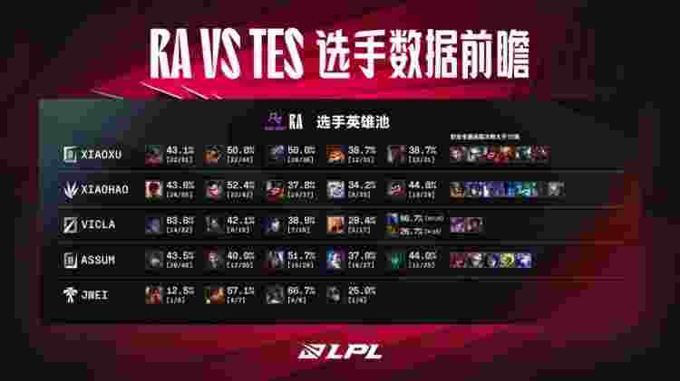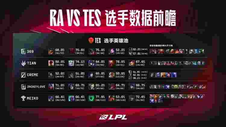今日英雄池数据前瞻:RA vs TES