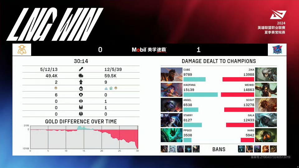 【12:50】水龙刷新,LNG五人集结先拿下水龙,但后续豹女盲视野探草被锤石钩到秒杀,泰坦也被莉莉娅大招睡到接闪现Q收下,OMG顺势推掉下路一塔。