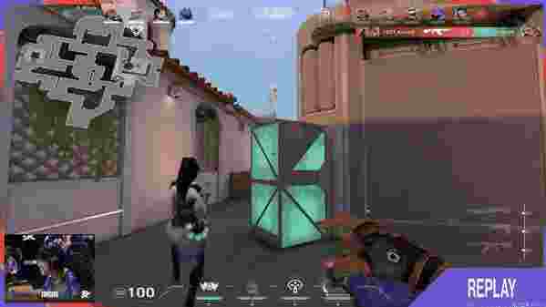 下半场手枪局PRX进攻A区,eeiu与Asuna双人回防四杀取得胜利。次局d4v41正义双杀突破A区,队友捡起长枪翻盘成功。然而100T立即回应,bang标配三连发双杀,队友迅速补防翻盘成功。来到长枪局PRX来找B区麻烦,100T似乎早已阅读对手战略,4B重防拿到赛点。赛点局100T前压中路拿到首杀,人数劣势的PRX未能掀起大风大浪最终被对手13-5带走。