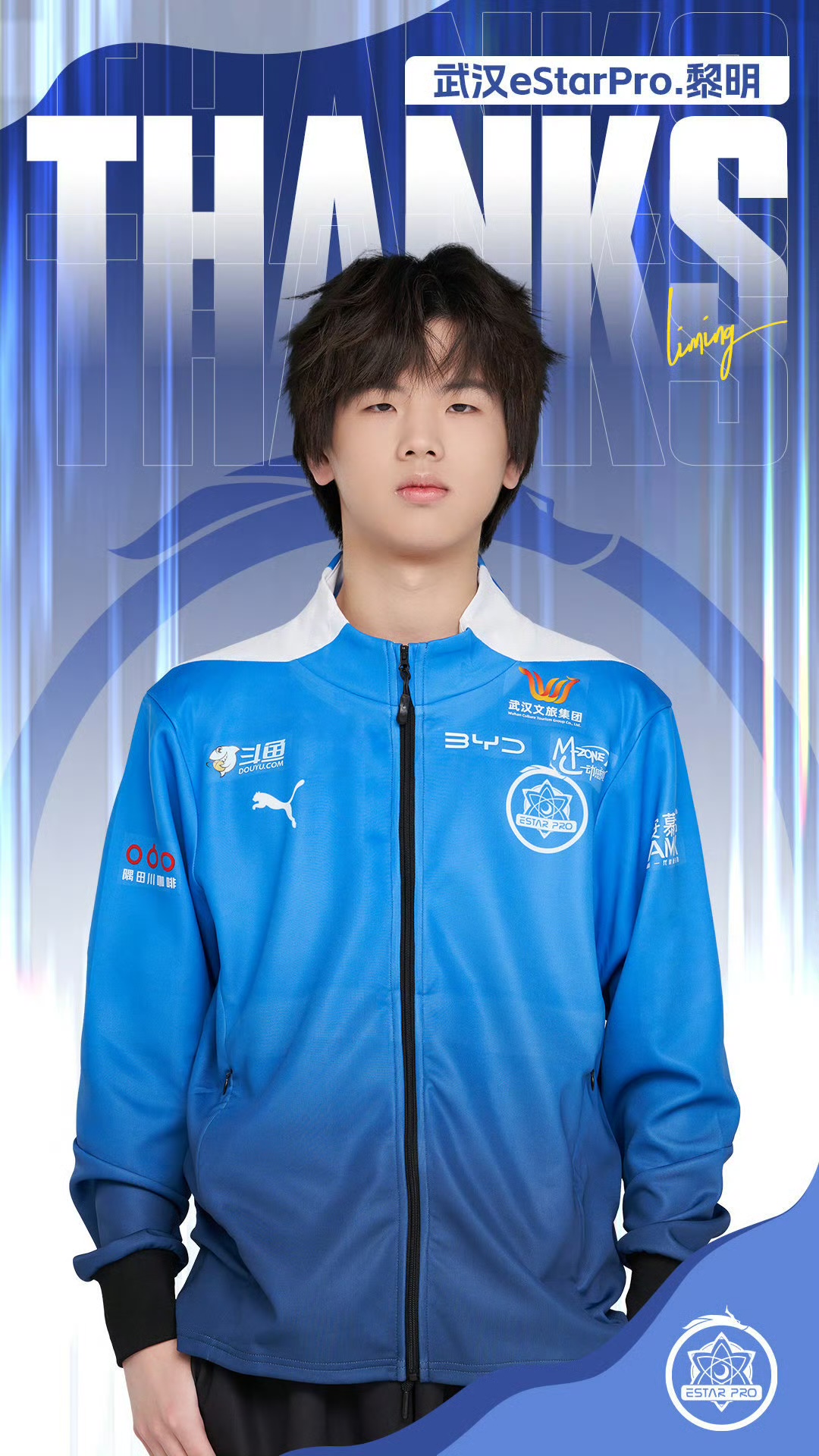 经三方友好协商达成一致,即日起,武汉eStarPro中路选手黎明(黎明)正式转会至滔搏电竞王者荣耀分部 。