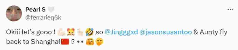 牢靖Jinggg的妈妈也在评论区跟着凑了一波热闹,艾特Jinggg与f0rsakeN说:好的,Let 's go!要不要飞回上海?