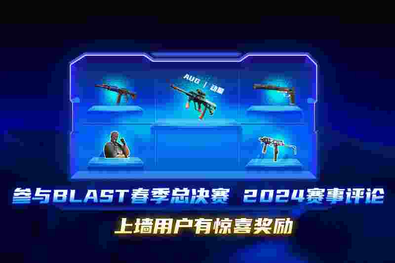 BLAST春季总决赛 2024期间,即2024年6月12日至6月16日,用户在对阵赛事页面中的精彩评论将有机会出现在直播页面中,上墙的评论用户将有机会赢取AUG | 动量、加利尔 AR | 信号灯、USP 消音版 | 次时代、MP9 | 焦油缠绕、执行者 | 凤凰战士等精美奖品。